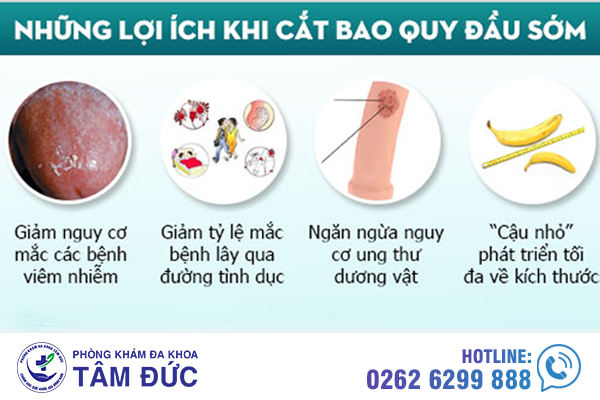 Giảm bớt lượng vi khuẩn dưới vùng da đầu dương vật và giảm khả năng viêm nhiễm, viêm đường tiết niệu, phù nề dương vật,…