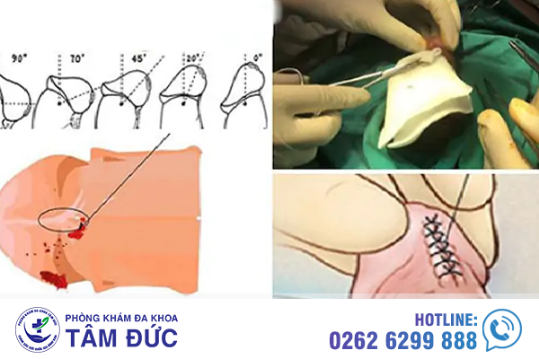 ➔ Khâu dây hãm bao quy đầu nếu tình trạng đứt dây hãm bao quy đầu hoặc xước rách.