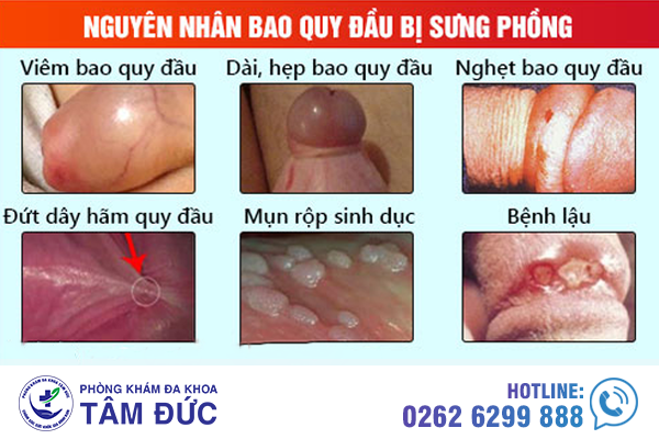 – Viêm nhiễm đường tình dục: Mắc phải các bệnh lây nhiễm qua đường tình dục như: Lậu, sùi mào gà, mụn rộp sinh dục…gây nên tình trạng sưng, đau bao quy đầu.