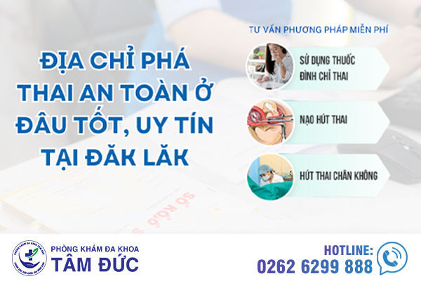 Trên đây là những thông tin về trung tâm phá thai uy tín tại Đắk Lắk. Hy vọng qua đó đã giúp chị em có thêm hiểu biết để lựa chọn địa chỉ khám chữa. Nếu như còn bất kỳ vấn đề nào về sức khỏe chưa rõ hãy liên hệ tới Phòng Khám Đa Khoa Tâm Đức tại Số 07 Đường Bà Triệu, Phường Buôn Ma Thuột, Tỉnh Đắk Lắk gọi đến số điện thoại: 0262.6299.888 hoặc chọn [TƯ VẤN TRỰC TUYẾN] để được các bác sĩ hỗ trợ chi tiết và nhanh chóng.